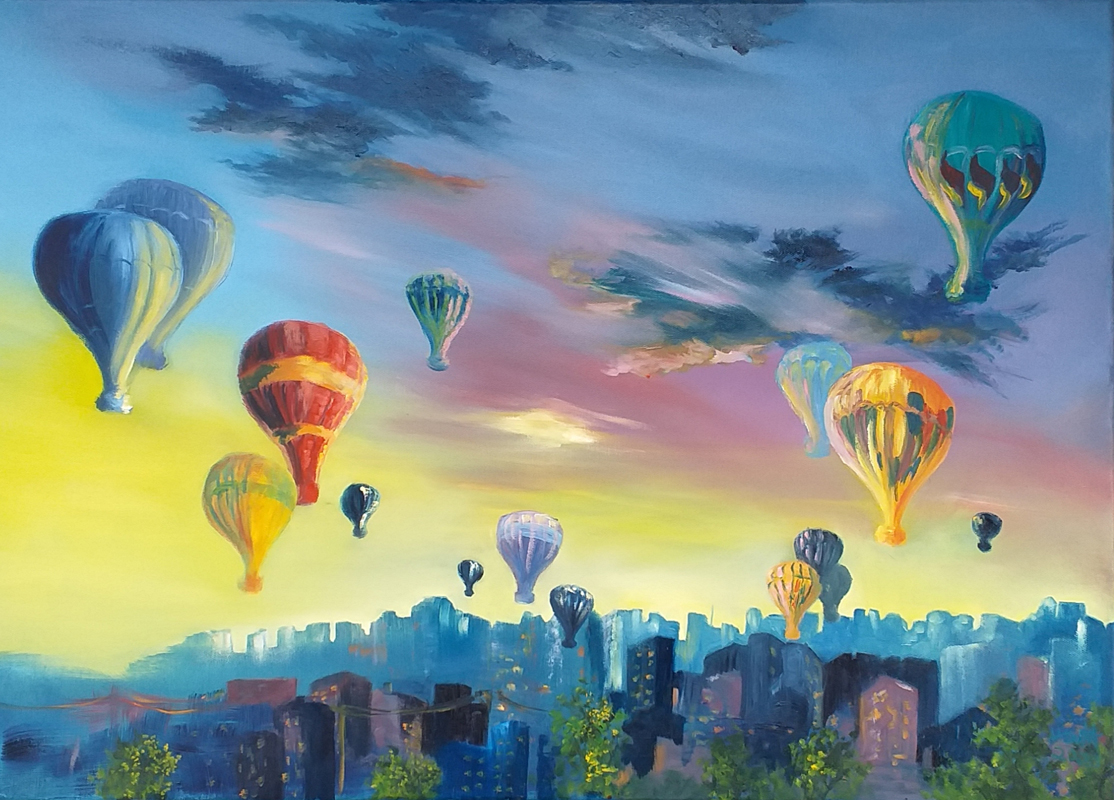 A mass of hot air balloons rise into a sunset sky in May, a celebration of the hazy long days of summer.