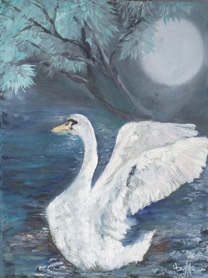 O! Silver Swan £125 2021 Oil on Canvas 30cm x 40cm